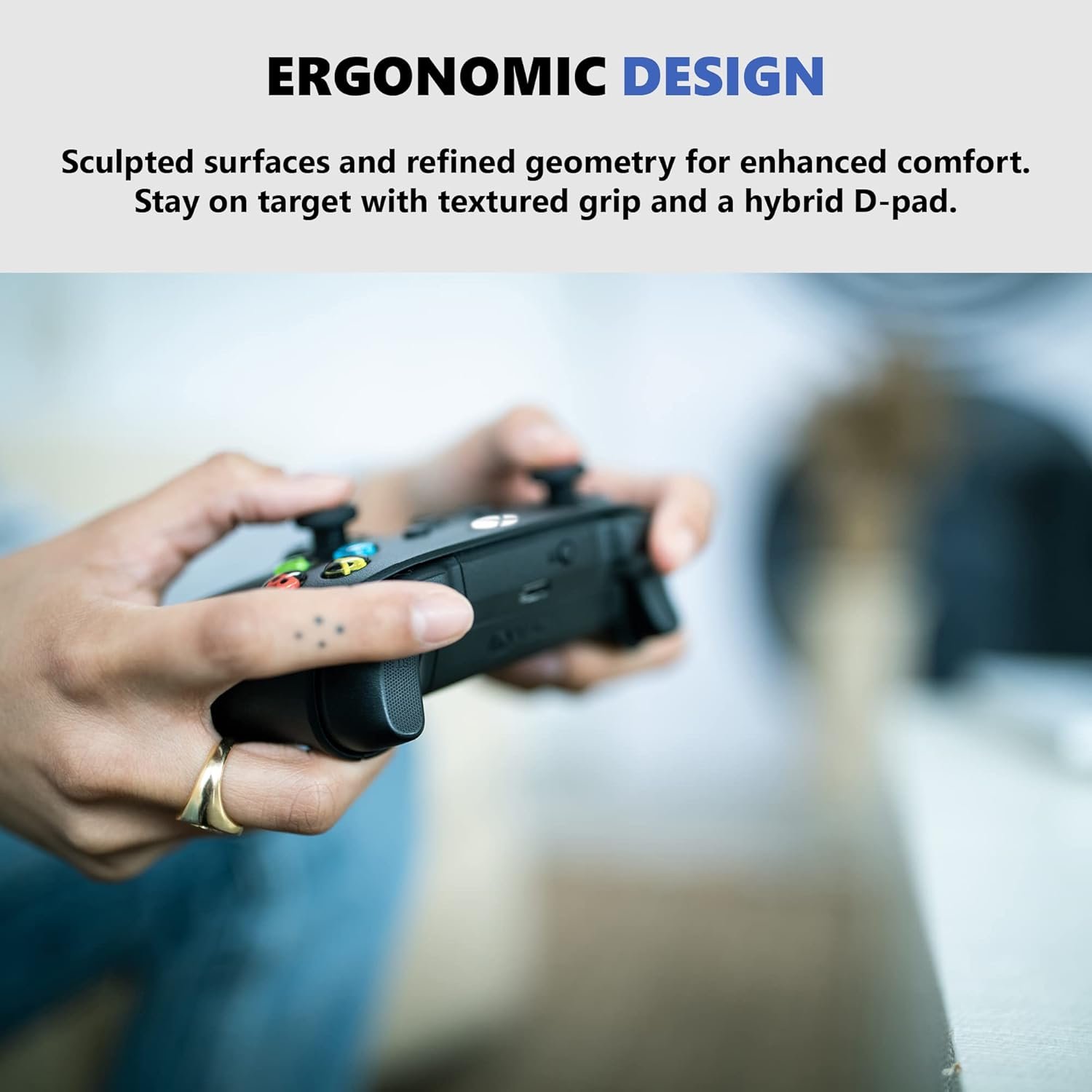 Stay on target with textured grip on the triggers, bumpers, and back case and with a new hybrid D-pad for accurate, yet familiar input.